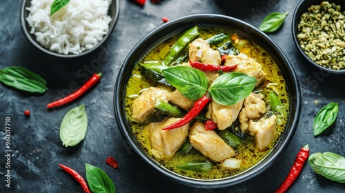 Green curry, Thai food in a white bowl.