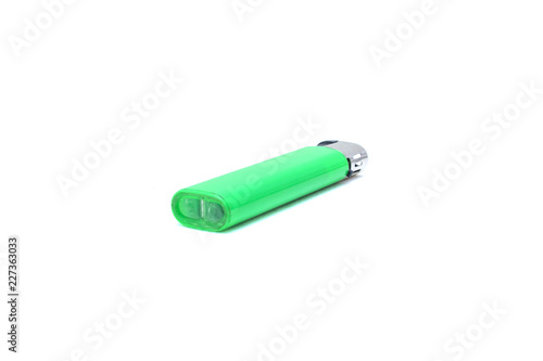 Green disposable lighter on white isolated background