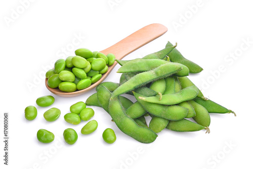 green edamame or soybean beans isolated on white background