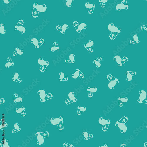 Green Electric car and electrical cable plug charging icon isolated seamless pattern on green background. Renewable eco technologies. Vector