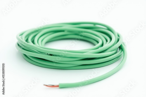 Green Electrical Cable Coil Isolated on White Background