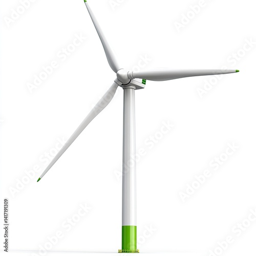 Green energy turbine isolated on pure white background realistic image art scale photography