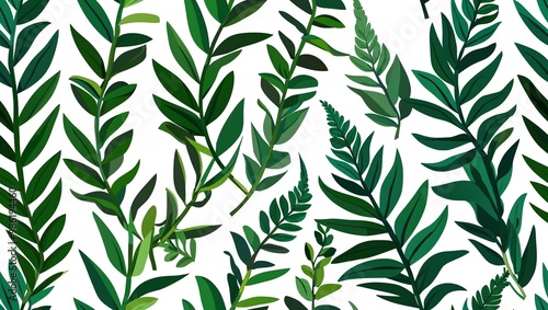 Green fern leaves geometric seamless plain white background design