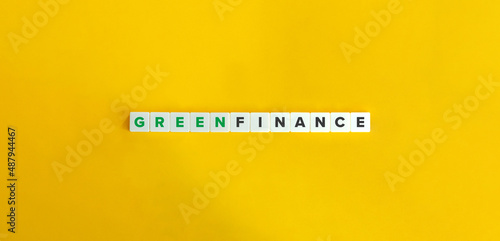 Green Finance Term on Letter Tiles on Yellow Background. Minimal Aesthetics.