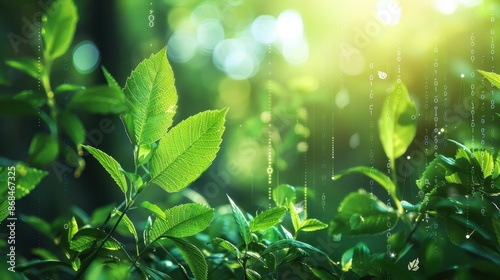 Green financial charts with fresh leaves, symbolizing environmental finance, illustration background
