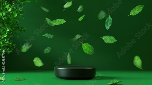 Green floating leaves, flying leaves, green leaf dancing, air purifier atmosphere simple main picture