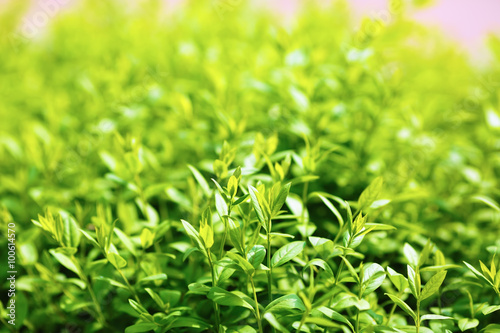 Green foliage background. Fresh green leaves with a soft smooth bokeh. Shallow depth of field. Selective focus.