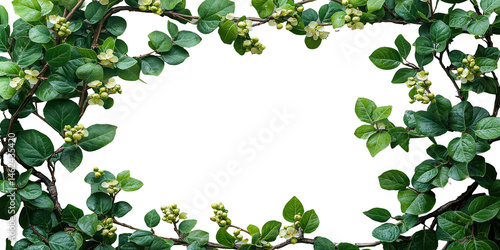 Green Foliage Frame With Flowers. Nature-Inspired Border Design Isolated On Transparent Background