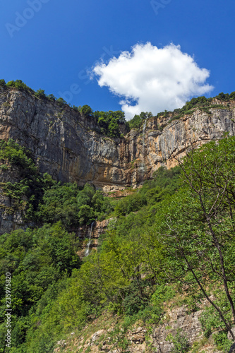 Green forest around Waterfall Skaklya near village of Zasele at Vazov trail, Balkan Mountains, Bulgaria