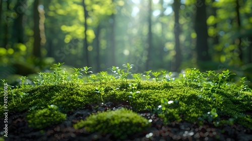 Green Forest Landscape with Moss and Blooming Plants