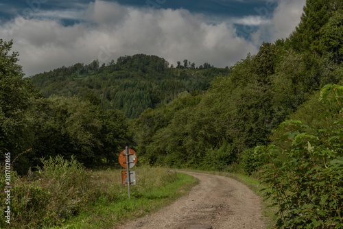Green forests and road to Slovakia Poland border near national park Poloniny