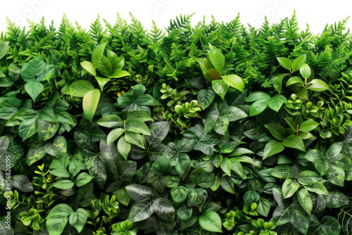 Green fresh wall leaves and twigs trimming isolated on background, bush fresh plant for decoration.