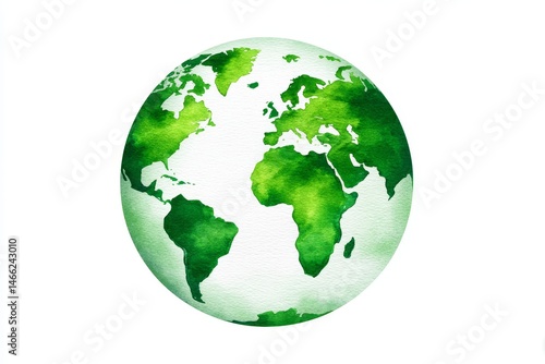 Green Globe Watercolor Illustration - Watercolor painting of a green Earth globe, ideal for environmental themes, sustainability projects, and global concepts