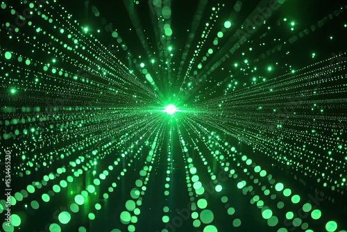 Green glowing particles radiating from a central point