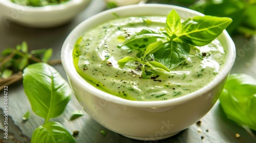 Green Goddess Dressing. Creamy Herb Sauce with Fresh Basil