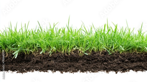 Green Grass and Soil Isolated on White Background