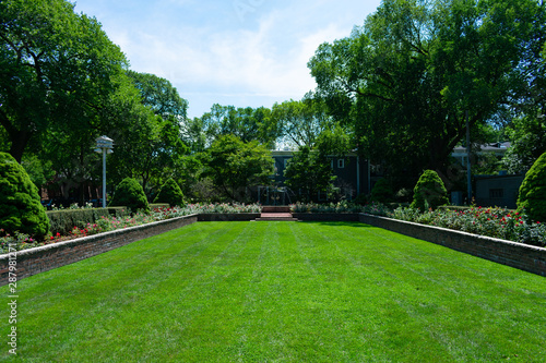 Green Grass at the Merrick Rose Garden in Evanston Illinois