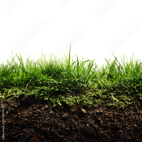 Green grass with dirt isolated on white background and texture --v 7.0