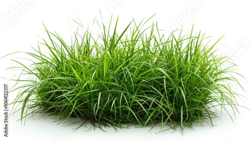 Green grassland, isolated on white, with dew drops on the blades. A fresh and calming nature scene