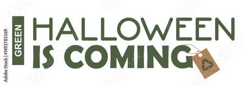 Green Halloween Is Coming Typography with Recycling Tag isolated on transparent background. eco-friendly Halloween announcement typography. sustainable holiday marketing campaigns. Vector illustration
