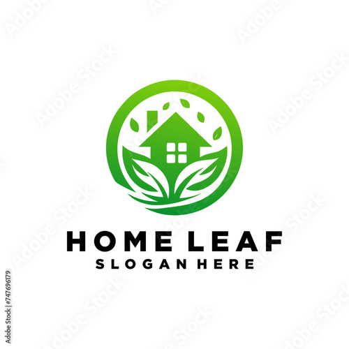 Green House Logo Template Design Vector Illustration.Home and leaf logo vector