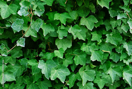 Green ivy leaves on the wall. Textured background of leaves. Green plant wall texture for backdrop design and eco wall and die-cut for artwork. A lot of leaves.