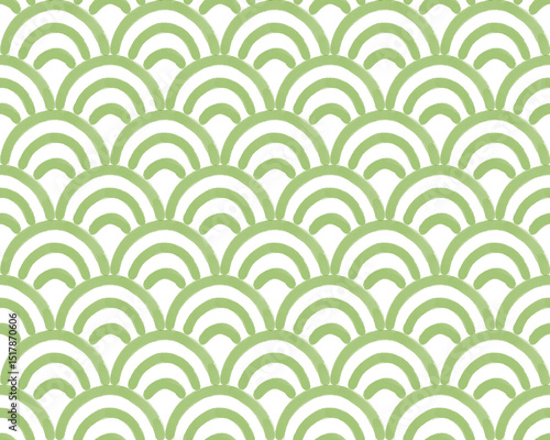 Green Japanese Seigaiha Wave Pattern, Japanese Hand Painted Seamless Design for Matcha Cafe, Branding and Decor