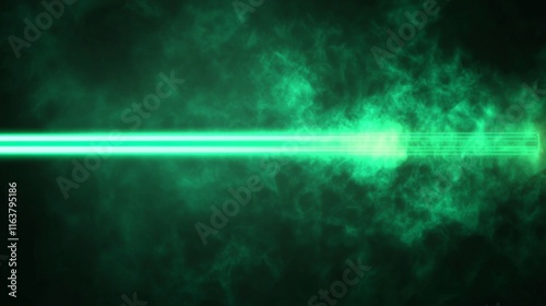Green laser light beam effect isolated on transparent background. Vector blue neon line abstract design. Lazer show with sparkle and smoke presentation pointer. Led broadway entertainment illustration