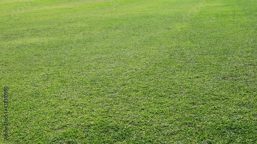 Green lawn background. Fresh green grass in the stadium. selective focus