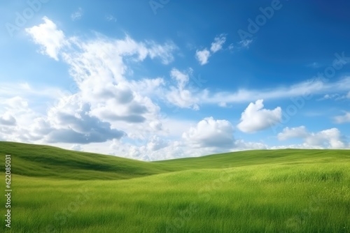 Green lawn under blue sky and white clouds