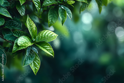 Green leaf for nature on blurred background with beautiful bokeh and copy space for text.
