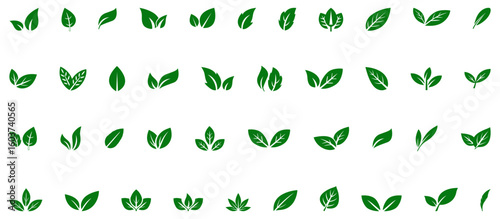 Green leaf icon collection. Green leaves logo icon. Flat style eco leaf logo. Vegan, tree, plant, fresh, energy and healthy. Simple linear leaves of trees and plants