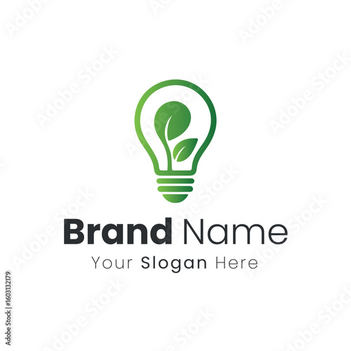 Green Leaf Light Bulb Logo Design for Eco-Friendly Business Solutions and Sustainable Energy Innovation Ideas