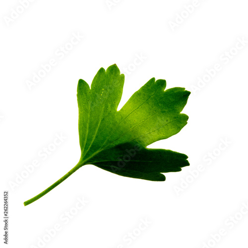 green leaf of black currant isolated on white background, top side of leaf