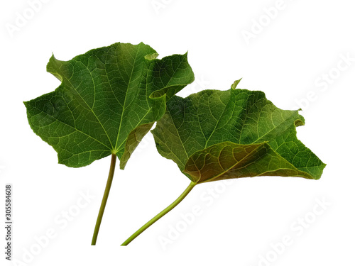Green leaf or green leaves on white background. Ricinus communis leaf Isolated on white background.
