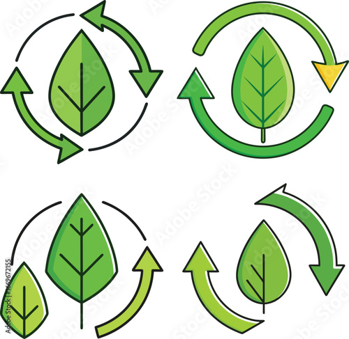 Green Leaf Recycling and Circular Economy Icons Set