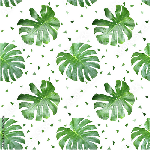 green leaf seamless pattern tropical polygons plant in low poly style for fresh background, wallpaper, textile, beauty and print.