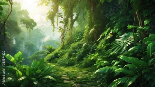 Green leaves background with three upward-pointing arrows also composed of leaves