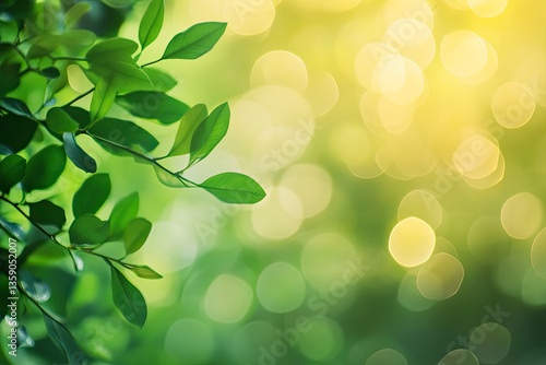 Green Leaves Bokeh Background Shining with Light for Nature or Spring