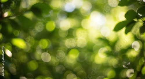 Green Leaves Bokeh Background with Sunlight Filtering Through