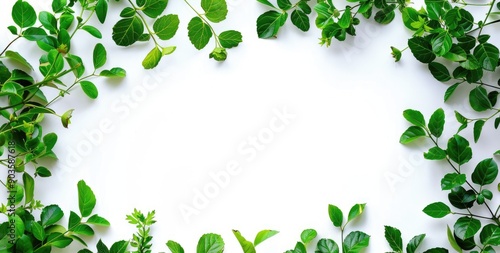 Green Leaves Border on White Background