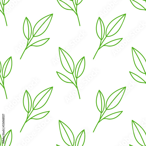 Green leaves. Floral seamless pattern with line doodles.