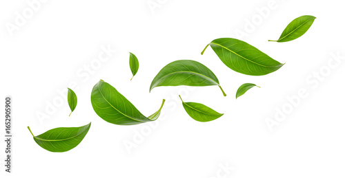 green leaves gracefully floating and swirling, isolated on transparent cutout background, cut out, png