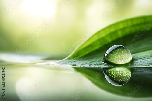 Green leaves on sun and blur tree foliage spring background with flood water efect