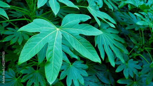 Green Leaves,Fatsia japonica, Lush Green Fatsia Japonica Leaves in a Tropical Forest