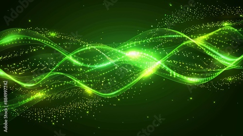 Green light waves technology background: futuristic digital abstract design with vibrant green light streaks, high-tech electronic circuit patterns, and modern cybernetic elements, perfect for innovat