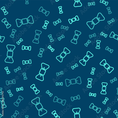 Green line Bow tie icon isolated seamless pattern on blue background. Vector.