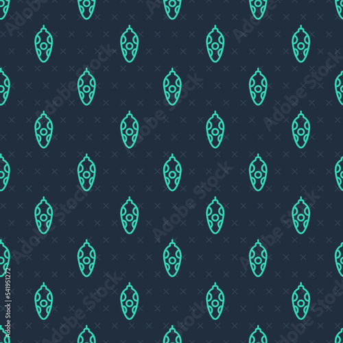 Green line Christmas toy icon isolated seamless pattern on blue background. Merry Christmas and Happy New Year. Vector