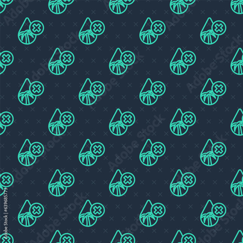 Green line Palm oil free icon isolated on isolated seamless pattern on blue background. Vector
