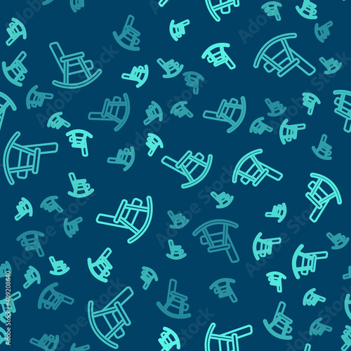 Green line Rocking chair icon isolated seamless pattern on blue background. Vector.